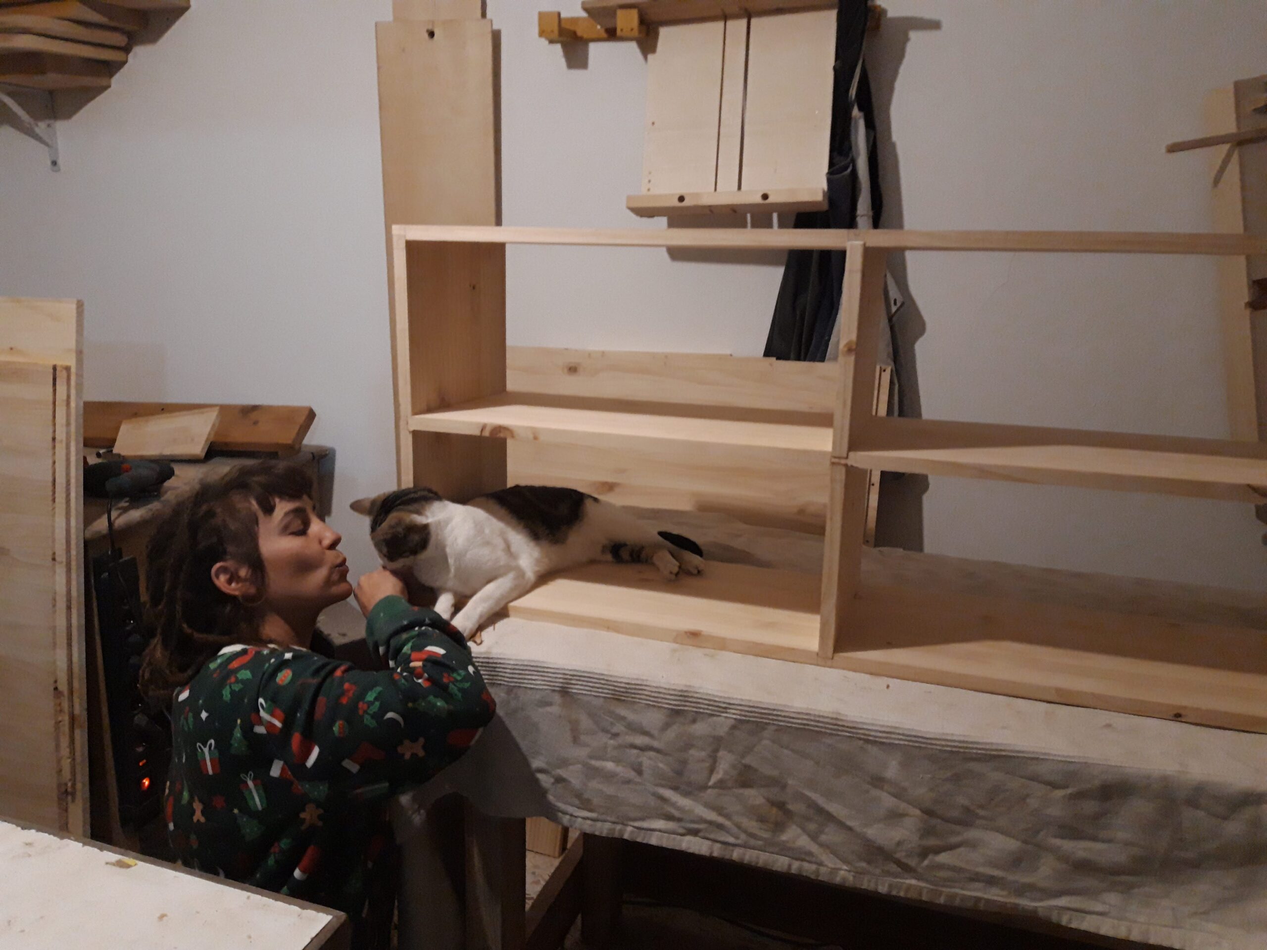 Una vez aprobado el diseño, se llevó a cabo la construcción en nuestro taller, combinando una estructura metálica resistente con el revestimiento en madera, garantizando solidez y durabilidad. Nuestros expertos realizaron una exhaustiva comprobación de calidades 🐱, asegurando que cada pieza cumpliera los más altos estándares.