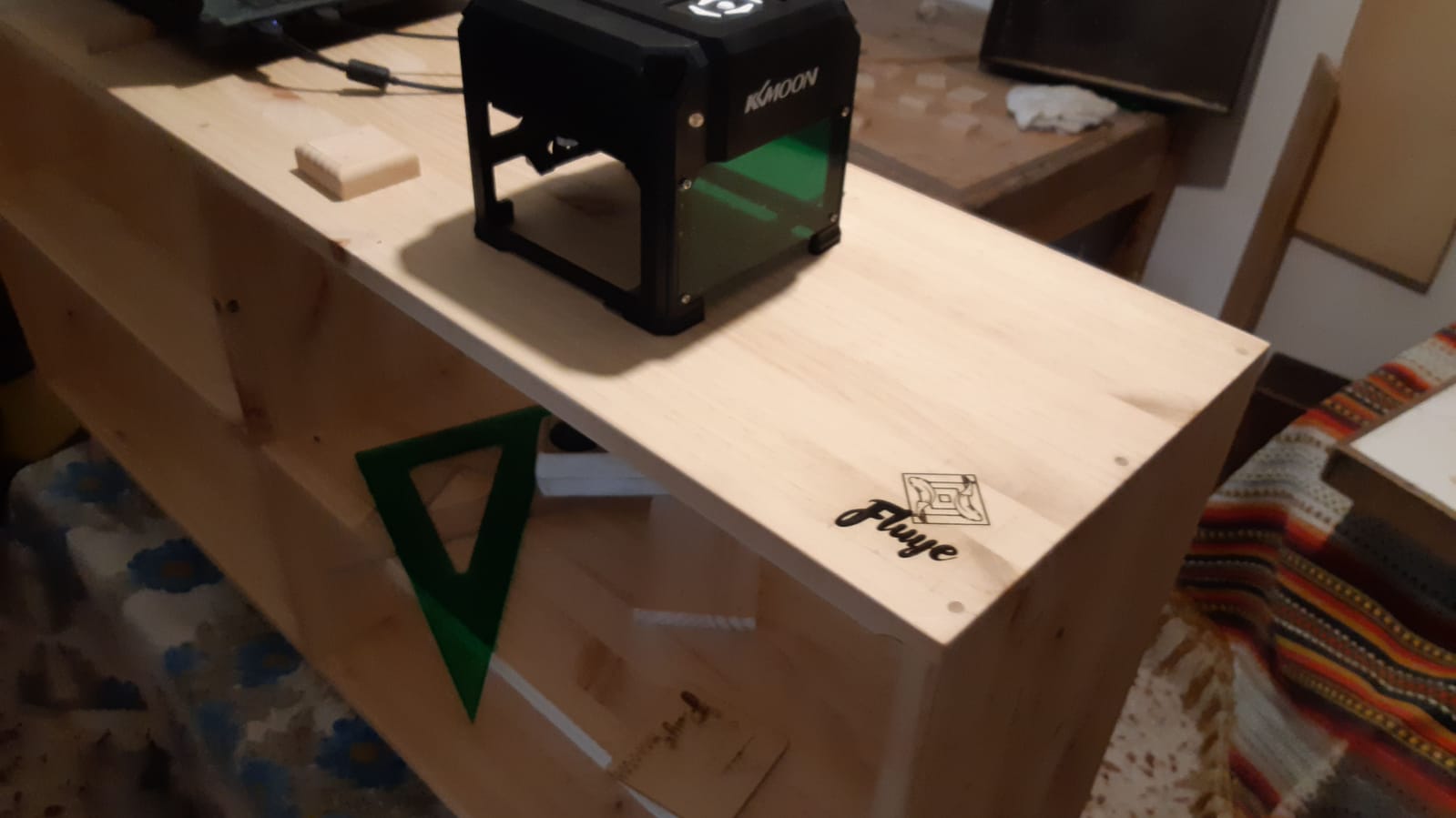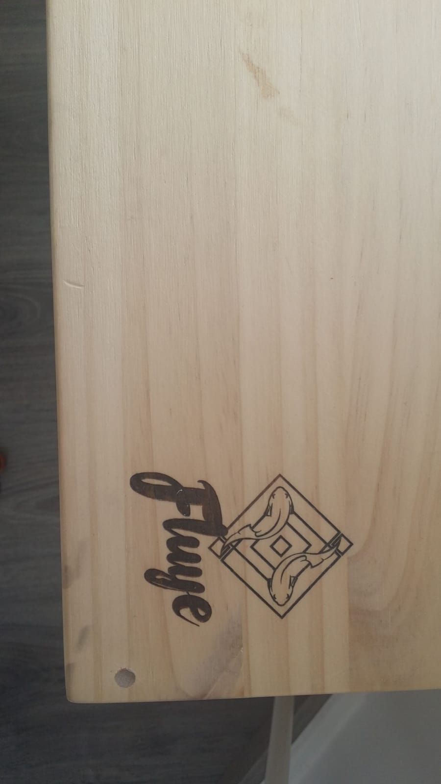 Posteriormente, se grabó la tipografía del logotipo del cliente mediante láser, aportando un detalle preciso y personalizado. Finalmente, los muebles fueron entregados e instalados, integrándose perfectamente en el espacio y cumpliendo tanto la funcionalidad como la estética prevista.